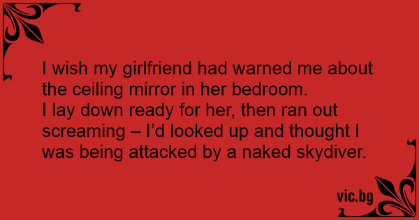 I wish my girlfriend had warned me about the ceiling mirror in her bedroom.