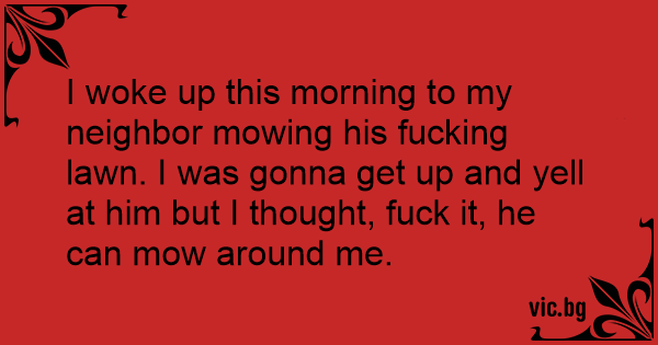 I woke up this morning to my neighbor mowing his fuскing lawn. I was gonna get up and yell at him but I thought, fuск it, he can mow around me.
