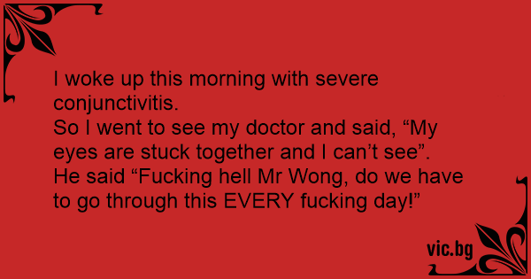 So I went to see my doctor and said, “My eyes are stuck together and I can’t see”.