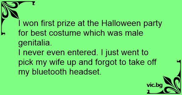I won first prize at the Halloween party for best costume which was male genitalia.