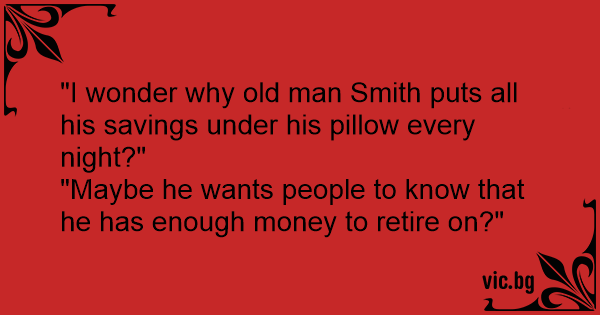 "I wonder why old man Smith puts all his savings under his pillow every night?"