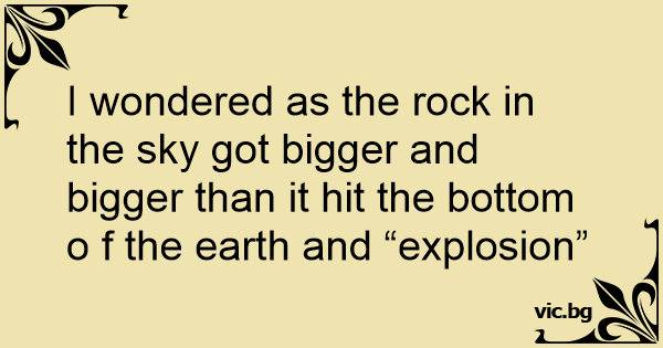 I wondered as the rock in the sky got вiggеr and вiggеr than it hit the bottom o f the earth and “explosion”