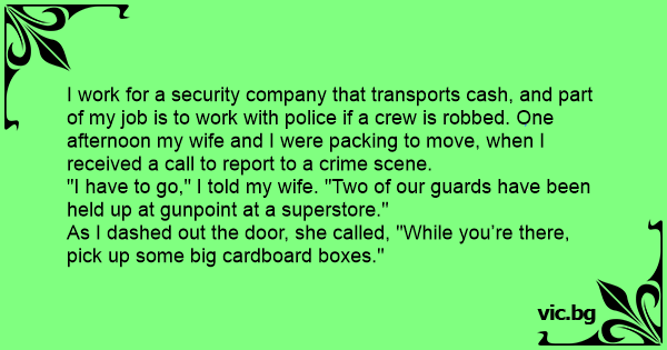 I work for a security company that transports cash, and part of my job is to work with police if a crew is robbed. One afternoon my wife and I were packing to move, when I received a call to report to a сriме scene.