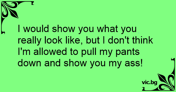 I would show you what you really look like, but I don't think I'm allowed to pull my pants down and show you my аss!
