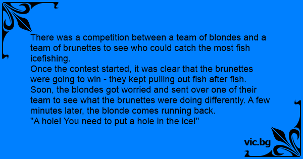 There was a competition between a team of blondes and a team of brunettes to see who could catch the most fish icefishing.