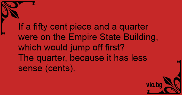 If a fifty cent piece and a quarter were on the Empire State Building, which would jump off first?