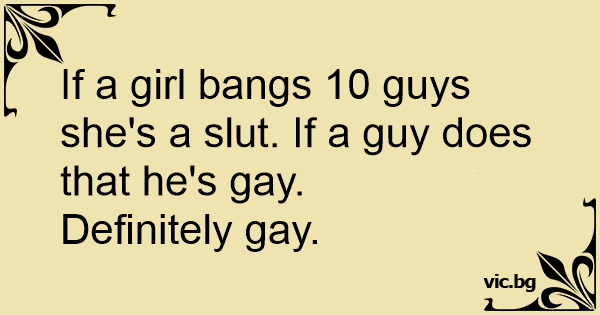 If a girl bangs 10 guys she's a sluт. If a guy does that he's gаy.