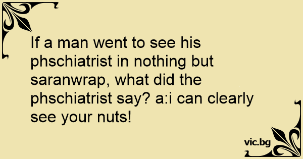 If a man went to see his phschiatrist in nothing but saranwrap, what did the phschiatrist say? a:i can clearly see your nuts!