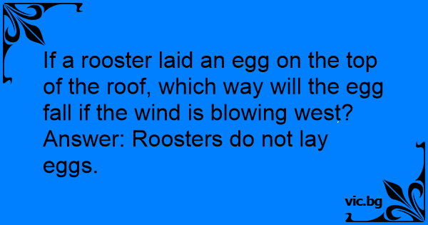 If a rooster laid an egg on the top of the roof, which way will the egg fall if the wind is blowing west?