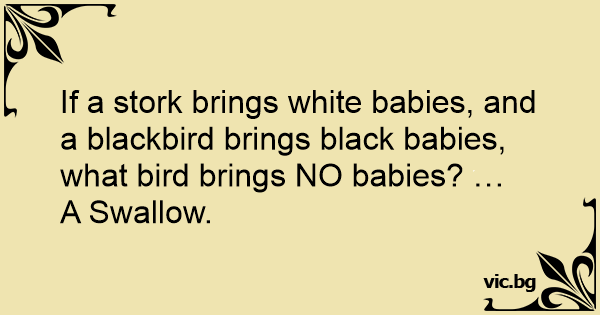 If a stork brings white babies, and a blackbird brings black babies, what bird brings NO babies? …