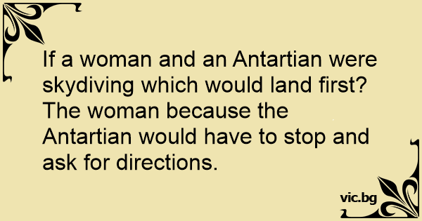 If a woman and an Antartian were skydiving which would land first? The woman because the Antartian would have to stop and ask for directions.