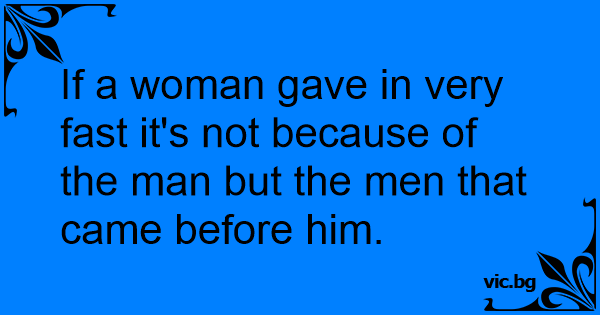 If a woman gave in very fast it's not because of the man but the men that came before him.