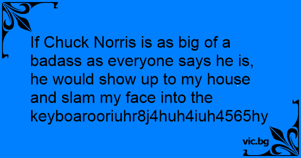 If Chuck Norris is as big of a badass as everyone says he is, he would show up to my house and slam my face into the keyboarooriuhr8j4huh4iuh4565hyhjg