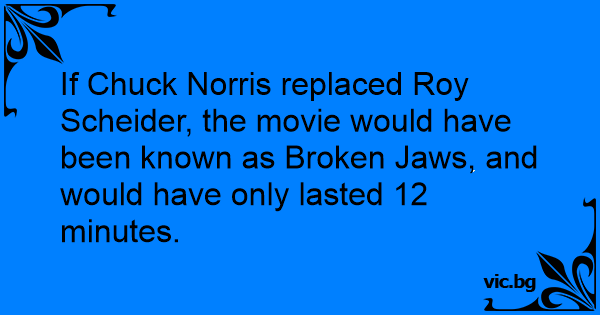 If Chuck Norris replaced Roy Scheider, the movie would have been known as Broken Jaws, and would have only lasted 12 minutes.
