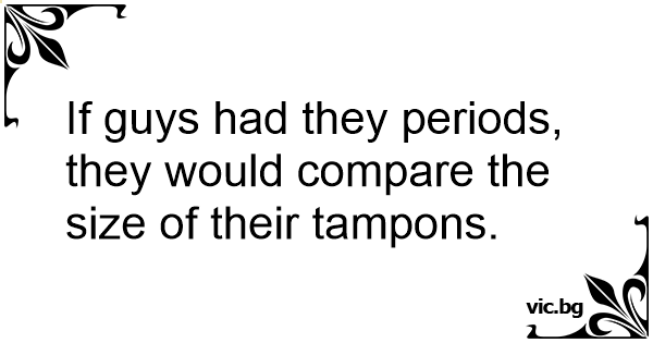 If guys had they periods, they would compare the size of their tampons.