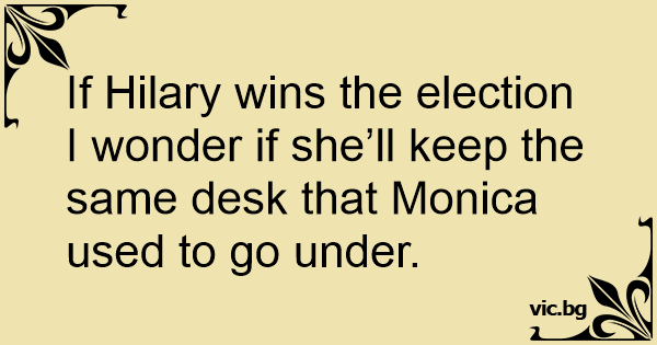 If Hilary wins the election I wonder if she’ll keep the same desk that Monica used to go under.