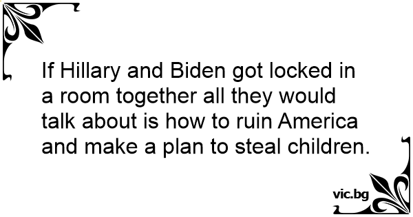 If Hillary and Biden got locked in a room together all they would talk about is how to ruin America and make a plan to steal children.