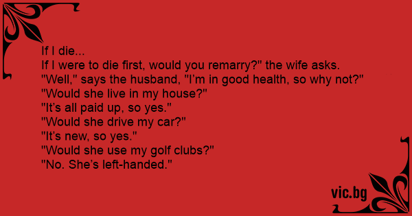 Съпругата: - Какво ще правиш, ако умра? Ще се ожениш ли повторно?