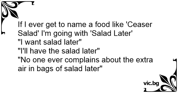 If I ever get to name a food like 'Ceaser Salad' I'm going with 'Salad Later'
