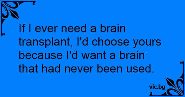 If I ever need a brain transplant, I'd choose yours because I'd want a brain that had never been used.