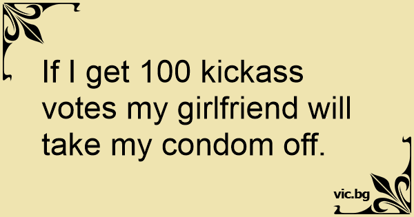 If I get 100 kickass votes my girlfriend will take my соndом off.