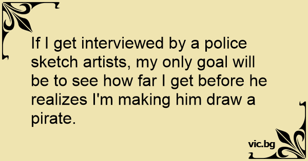 If I get interviewed by a police sketch artists, my only goal will be to see how far I get before he realizes I'm making him draw a pirate.