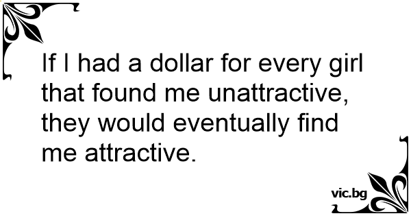 If I had a dollar for every girl that found me unattractive, they would eventually find me attractive.