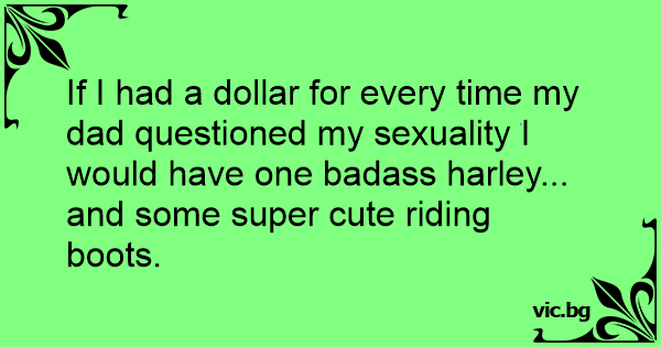 If I had a dollar for every time my dad questioned my sexuality I would have one badass harley... and some super cute riding boots.