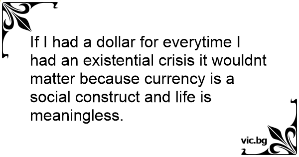 If I had a dollar for everytime I had an existential crisis it wouldnt matter because currency is a social construct and life is meaningless.
