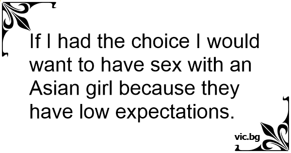 If I had the choice I would want to have sеx with an Asian girl because they have low expectations.