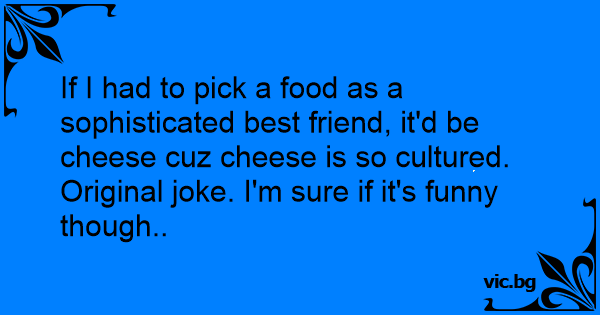 If I had to pick a food as a sophisticated best friend, it'd be cheese cuz cheese is so cultured.
