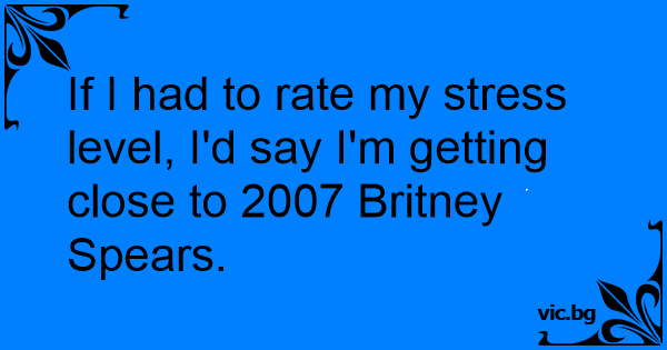 If I had to rate my stress level, I'd say I'm getting close to 2007 Britney Spears.