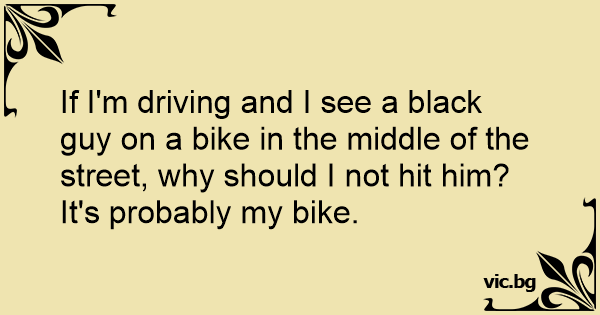 If I'm driving and I see a black guy on a bike in the middle of the street, why should I not hit him?