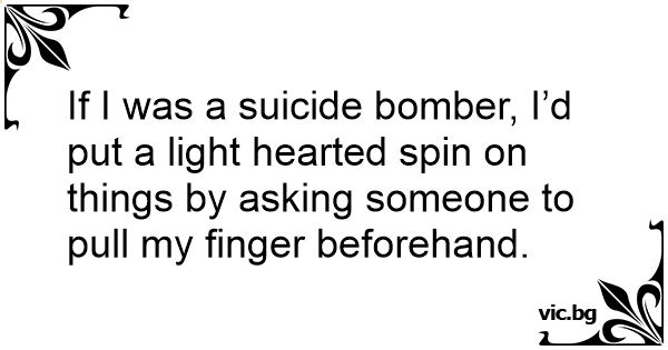 If I was a suicide bomber, I’d put a light hearted spin on things by asking someone to pull my finger beforehand.