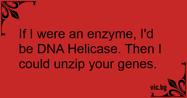 If I were an enzyme, I'd be DNA Helicase. Then I could unzip your genes.