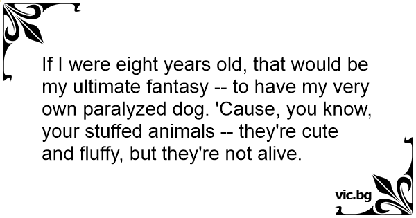 If I were eight years old, that would be my ultimate fantasy -- to have my very own paralyzed dog. 'Cause, you know, your stuffed animals -- they're cute and fluffy, but they're not alive.