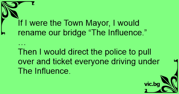 Then I would direct the police to pull over and ticket everyone driving under The Influence.