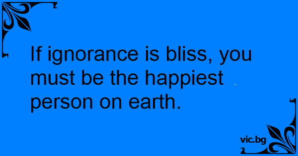 If ignorance is bliss, you...