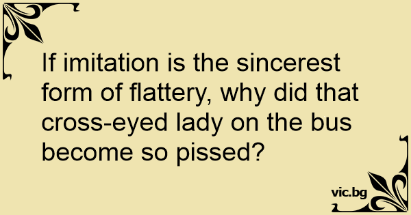If imitation is the sincerest form of flattery, why did that cross-eyed lady on the bus become so рissеd?