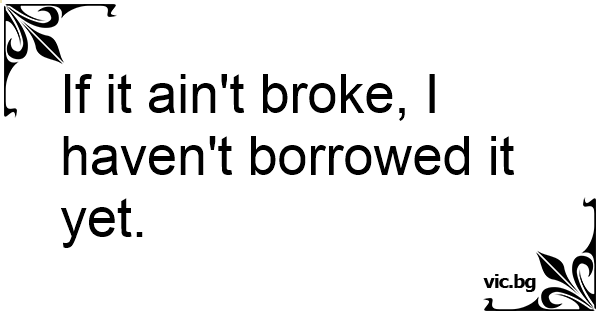 If it ain't broke, I haven't borrowed it yet.