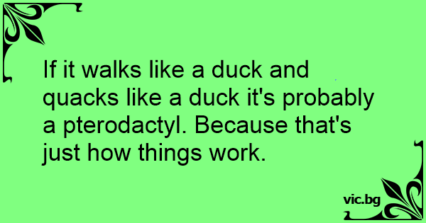 If it walks like a duck and quacks like a duck it's probably a pterodactyl. Because that's just how things work.
