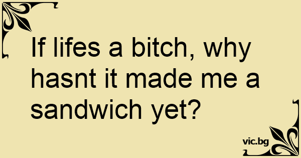 If lifes a вiтсh, why hasnt it made me a sandwich yet?