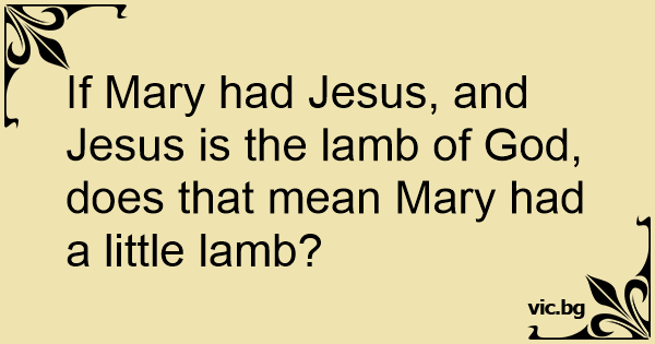 If Mary had Jesus, and Jesus is the lamb of God, does that mean Mary had a little lamb?