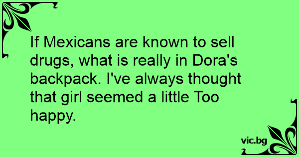 If Mexicans are known to sell drugs, what is really in Dora's backpack. I've always thought that girl seemed a little Too happy.