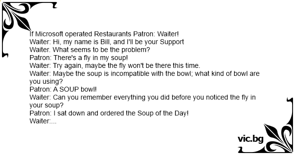 If Microsoft operated Restaurants Patron: Waiter!