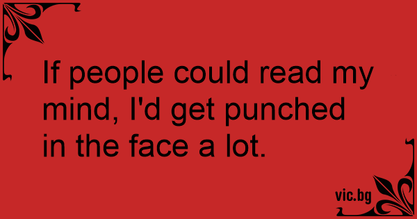If people could read my mind, I'd get punched in the face a lot.