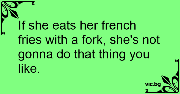 If she eats her french fries with a fork, she's not gonna do that thing you like.
