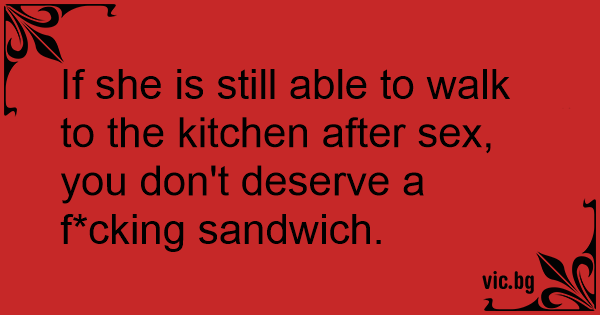 If she is still able to walk to the kitchen after sеx, you don't deserve a f*cking sandwich.
