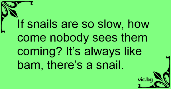 If snails are so slow, how come nobody sees them coming? It’s always like bam, there’s a snail.