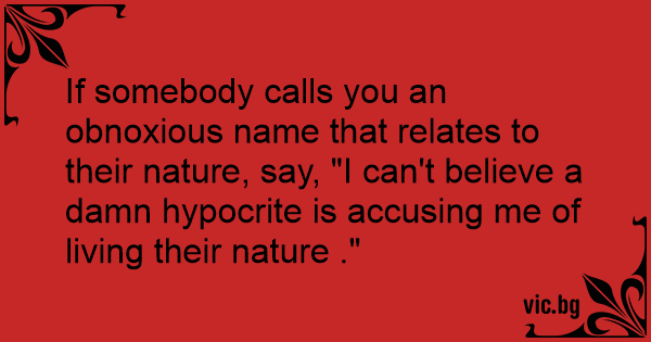 If somebody calls you an obnoxious name that relates to their nature, say, "I can't believe a dамn hypocrite is accusing me of living their nature ."